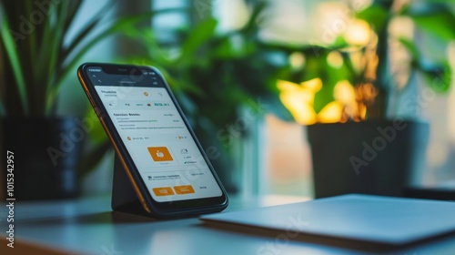 Mobile phone with cashback app on the screen. Online banking and refund policy.