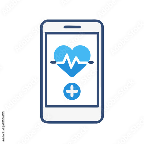 Mobile phone with heart rate application and add symbol icon. Medical monitoring technology for healthcare. Vector illustration