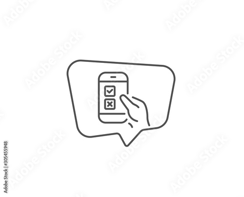 Mobile survey line icon. Chat bubble design. Select answer sign. Business interview symbol. Outline concept. Thin line mobile survey icon. Vector