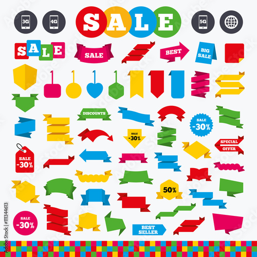 Mobile telecommunications icons. 3G, 4G and 5G.
