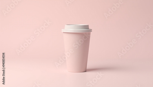 Mock up blank ceramic travel mug with lid, isolated on a pastel color background