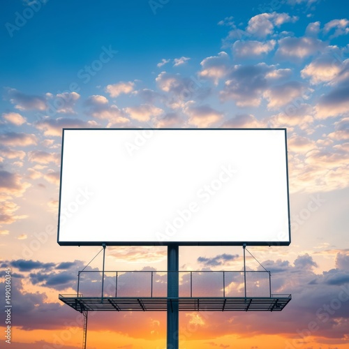 Mock up image wide blank white billboard or large display and clouds against sunset warm sky consumerism mockup advertising isolated white screen background template copyspace concept billboard blank
