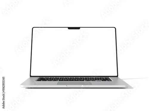 Mock up of modern laptop with clear screen isolated on white background, mockup, portable, internet