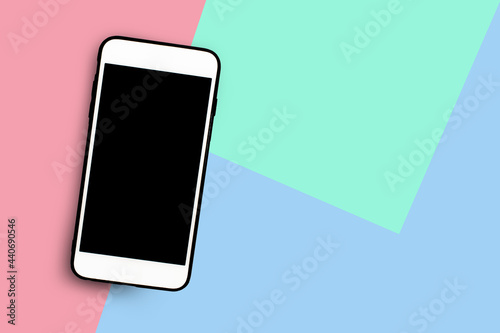 Mock up screen mobile phone on pastel paper background