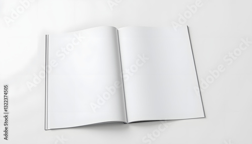Mock-up magazine or catalog on white table. Blank page or notepad on neutral background. Blank page or notepad for mockups or simulations, vibrant. White tone
