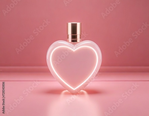 Mockup of a white luxury perfume bottle placed on a pink background. pink background space for text