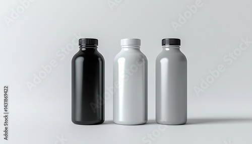 Mockup of black and white plastic bottles on white background. 3d rendering