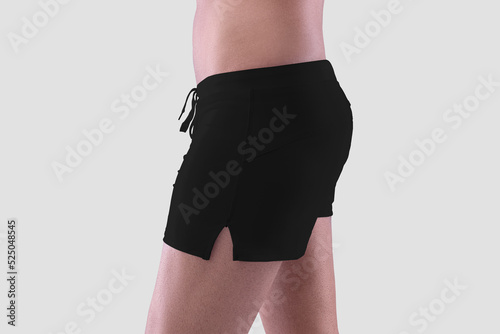 Mockup of black men's boxers with ties, side view, underpants for swimming on a man, isolated on background.
