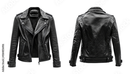mockup of Leather jacket, front, and blank back view and with significant distance between front and back view placement.
