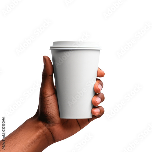 Mockup of male hand holding a coffee. Isolated on transparent background.