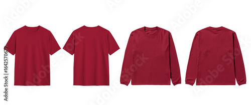 Mockup showcases front and back views of burgundy tshirts ideal for apparel designs.