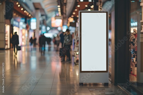 Mockup Vertical Empty Signboard for Advertising in Shopping Mall - Commercial Floor Display. Beautiful simple AI generated image in 4K, unique.