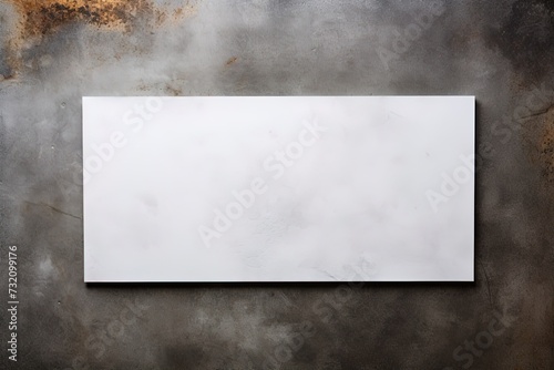 mockup white blank paper sheet top view on grey concrete stone background, template empty card flat lay for design with copy space