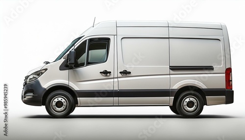 mock-up white delivery van, cargo van delivery truck vehicle template mockup isolated on white background, vintage, png