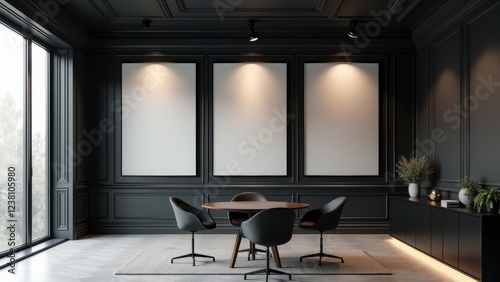 Mockup with Multiple Posters, Elegant office black accents graphic posters.
