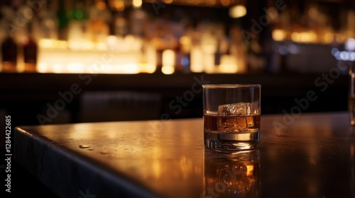 Moderate drinking with a glass of whiskey at a quiet bar. Featuring serenity and focus