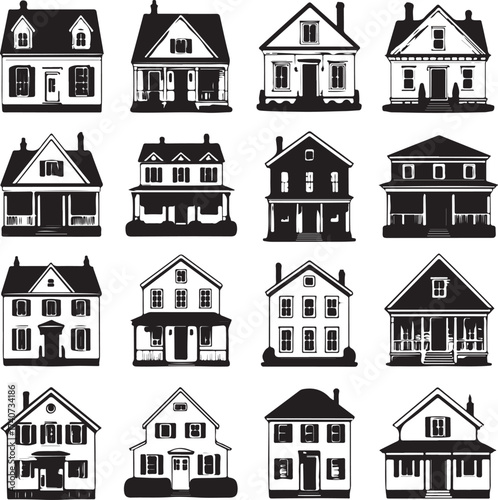 “Modern & Classic House Silhouette Bundle – 16 Unique Home Designs for Print, SVG, and Digital Cutting”