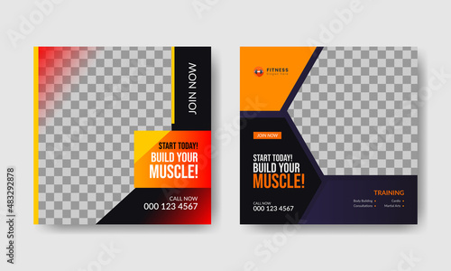 modern creative gym and fitness social media post and web banner.