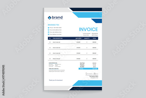Modern invoice design black and blue color