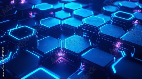 Modern Abstract Blue Background with Glowing Geometric Shapes