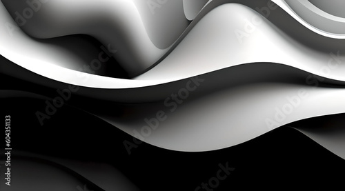 Modern abstract dynamic shapes black and white background with grainy paper texture, Generative AI