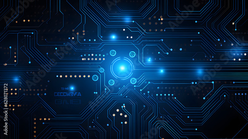 Modern abstract technology concept, blue background, digital circuit communication circle, innovation