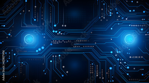 Modern abstract technology concept, blue background, digital circuit communication circle, innovation