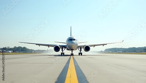 Modern Airliner Positioned on Airport Runway Under Clear Sky