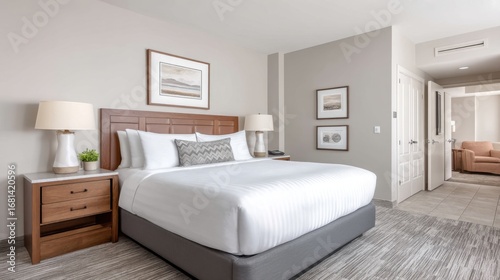 Modern and Cozy Hotel Room Featuring Comfortable King Size Bed, Elegant Decor, Warm Lighting, and Inviting Atmosphere Ideal for Relaxation and Leisure