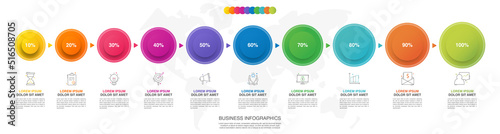 Modern and simple flat vector illustration. Infographic template with 10 circles, elements, sectors and arrows. Designed for business, presentations, web design, interface ten step diagrams