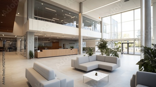 Modern and Spacious Lobby with Natural Light and Stylish Furniture in Contemporary Office : Generative AI