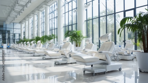 Modern and well lit dental office featuring a sterile environment with a central white chair