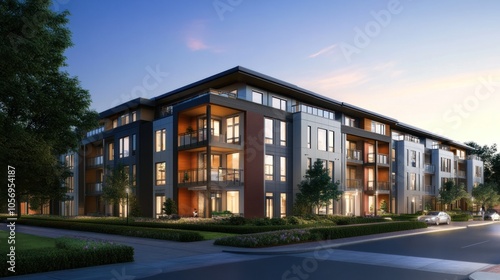 Modern Apartment Building at Dusk