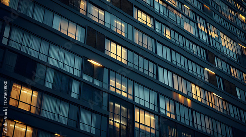 Modern Apartment Building Exterior At Night With Illuminated Windows Low Angle View Of A Contemporary Urban City Architecture