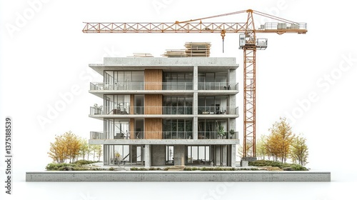 Modern Apartment Building Under Construction: A 3D Architectural Visualization