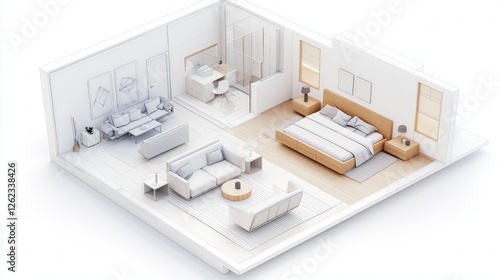 Modern Apartment Isometric Design Bedroom Living Room Decor