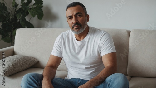 Modern Arab Family Man in Minimalist Home for Lifestyle and Interior Design Content