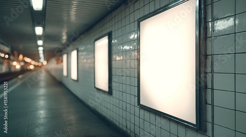 Modern Architectural Corridor: Illuminated Passageway with Blank Panels