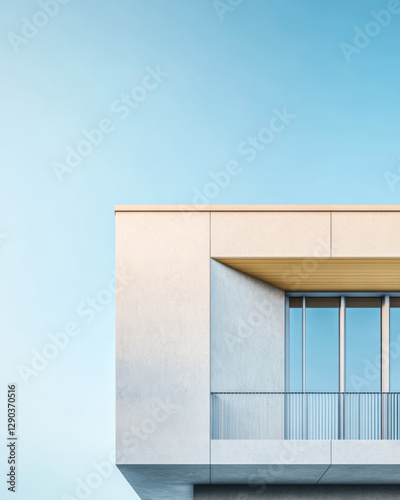 Modern architectural design featuring a minimalist balcony under a clear blue sky