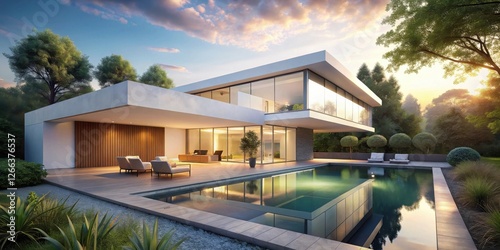 Modern Architectural Design Luxurious Home with Infinity Pool and Expansive Views at Sunset