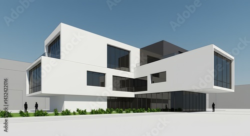 Modern Architectural Design Sleek White and Black Cuboid Structure, Innovative Geometric Building Concept, Contemporary House Plan, Futuristic Home Exterior Rendering