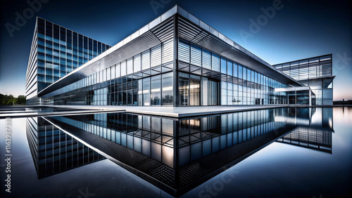 Modern architectural design with high contrast reflection in water