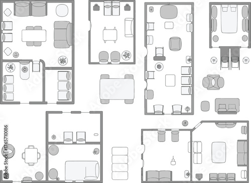 Modern architectural floor plan top view with stylish furniture layout, home interior design blueprint, professional house planning concept for architects, designers, real estate visualization