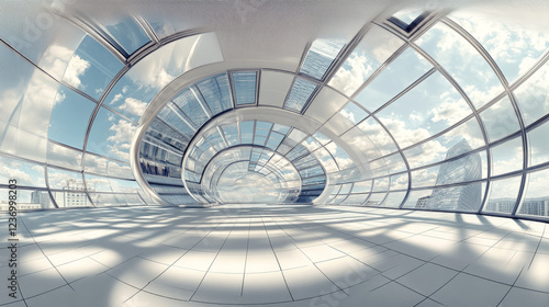 Modern Architectural Interior with Grid Ceiling 360 vr 3d render panorama. 3D Illustration