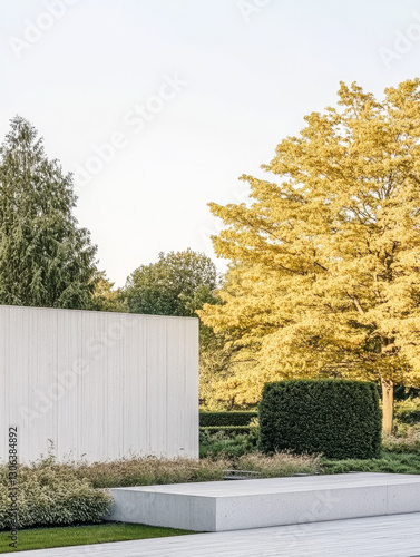 Modern architecture integrates with nature in a tranquil garden setting