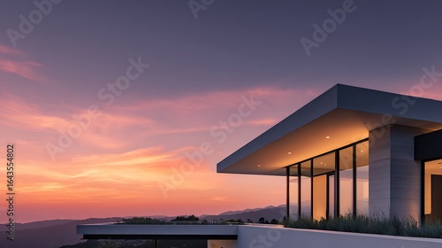 Modern Architecture with Stunning Sunset Sky and Scenic Mountain View
