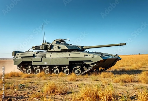Modern armored infantry fighting vehicle on a field, strategic, weapon