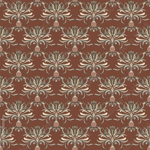 Modern, Art Deco, Art Nouveau. Seamless pattern of isolated graceful botanical elements, antique style for branding, advertising, wedding design. Digital illustration.