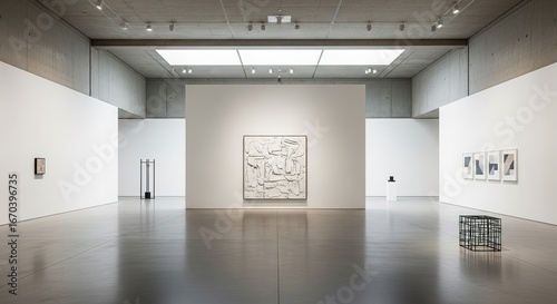 Modern Art Gallery Interior with Abstract Painting and Minimalis