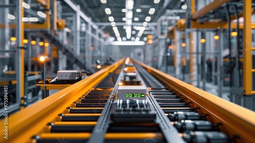 Modern automated warehouse with advanced logistics equipment and machinery for efficient storage distribution and supply chain Showcasing conveyor belts forklifts